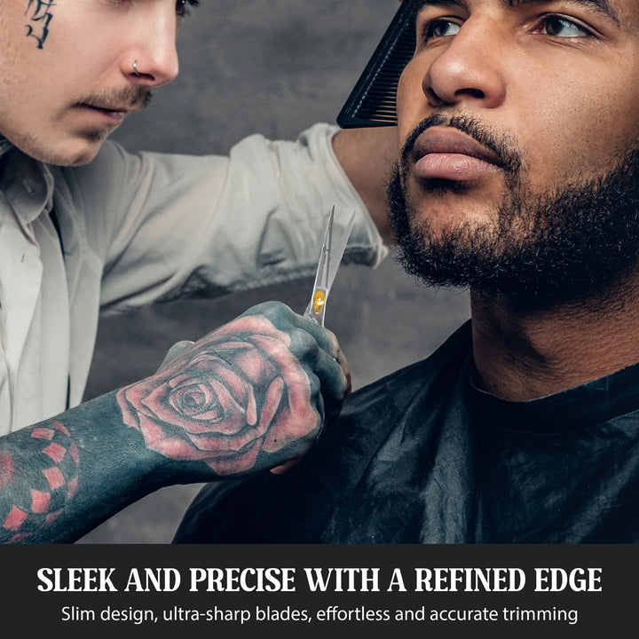 Designed for barbers, hairstylists, and at-home users, the Trimora Barber Haircut Scissors deliver razor-sharp cutting performance, ergonomic comfort, and long-lasting durability. Made from premium stainless steel, these scissors are built for smooth, precise, and effortless cutting.