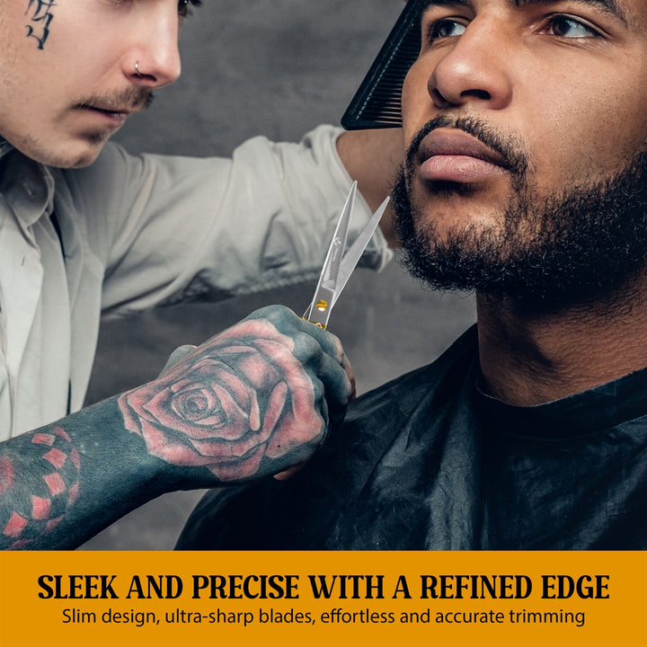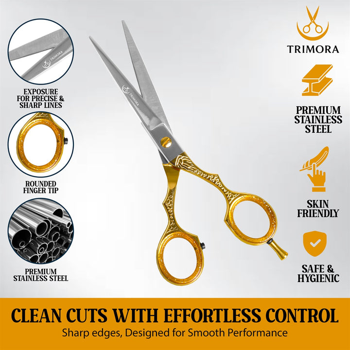 The Trimora Barber Scissor is designed for barbers, hairstylists, and salon professionals who demand sharpness, control, and durability in their cutting tools. Made from premium stainless steel, these scissors provide smooth, precise cuts for both classic and modern hairstyles.