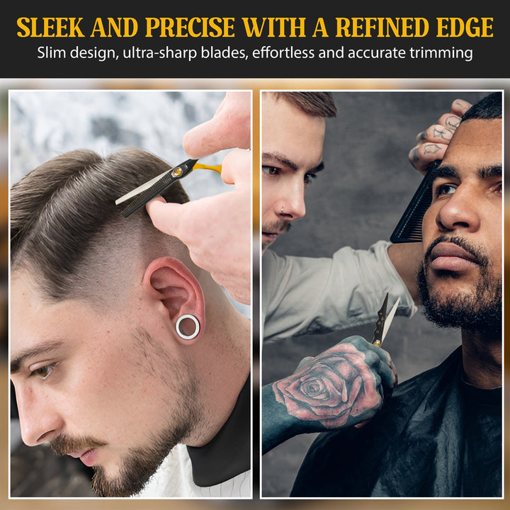 Upgrade your craft with the Trimora Barber Shears Kits, designed for barbers, hairstylists, and grooming enthusiasts who demand precision and reliability. Each kit combines premium stainless steel scissors with essential accessories, offering a complete solution for cutting, thinning, and styling.