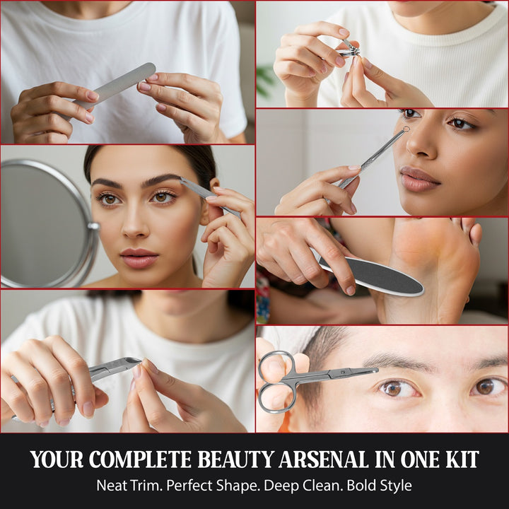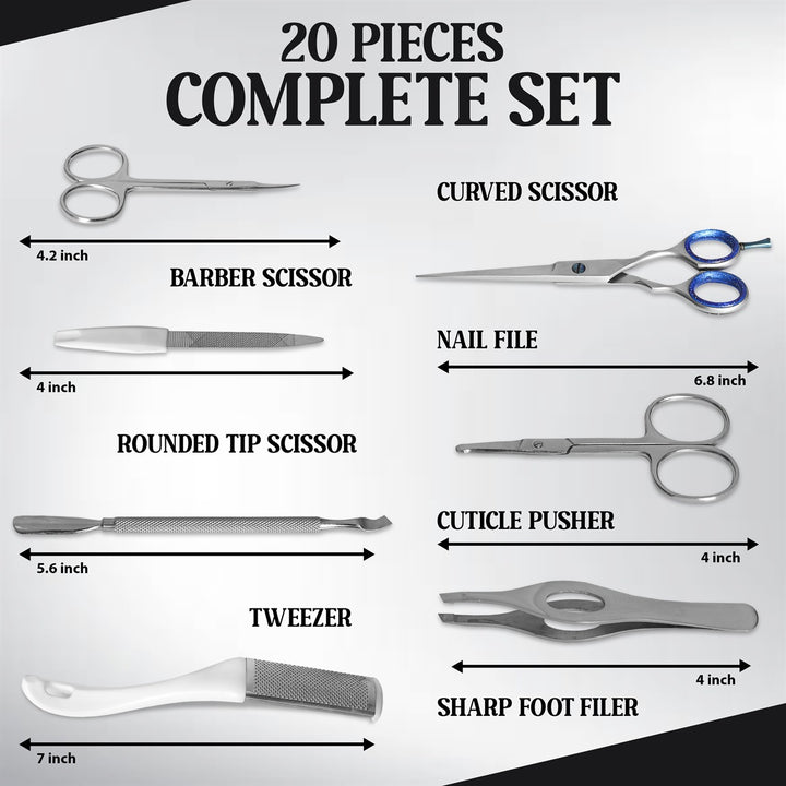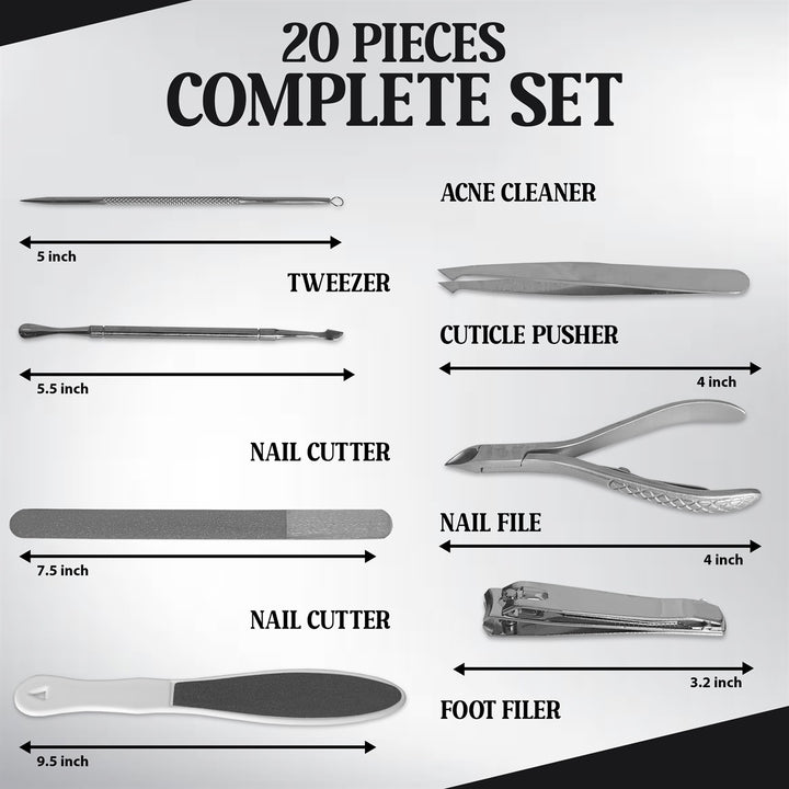Complete Nail Care Set – Includes nail clippers, cuticle nippers, pushers, and filers.