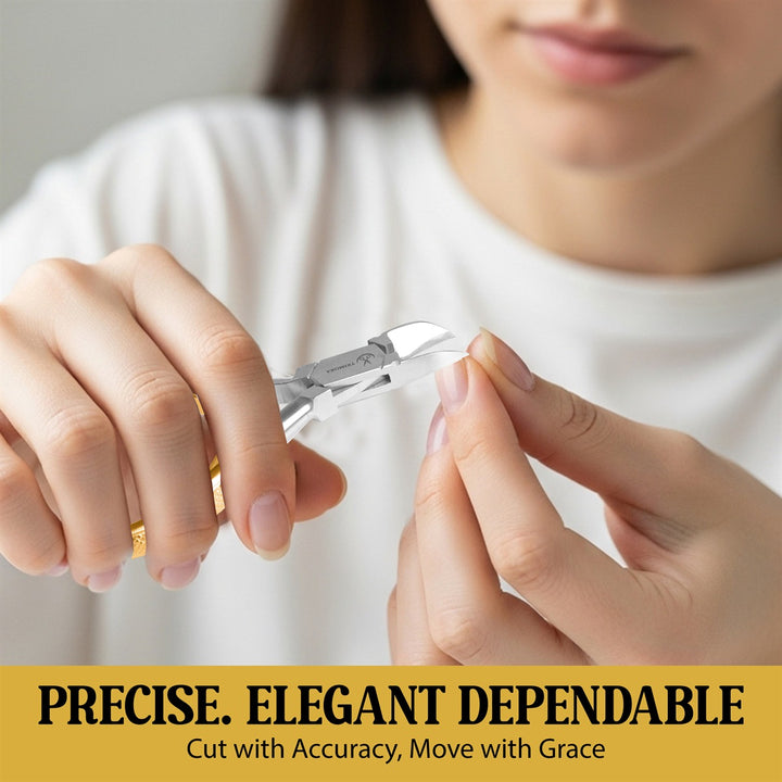 Achieve clean, salon-quality nails with the Trimora Professional Cuticle Nippers. Designed with precision-ground, razor-sharp blades, these nippers allow you to safely trim cuticles, hangnails, and excess skin for a polished look.